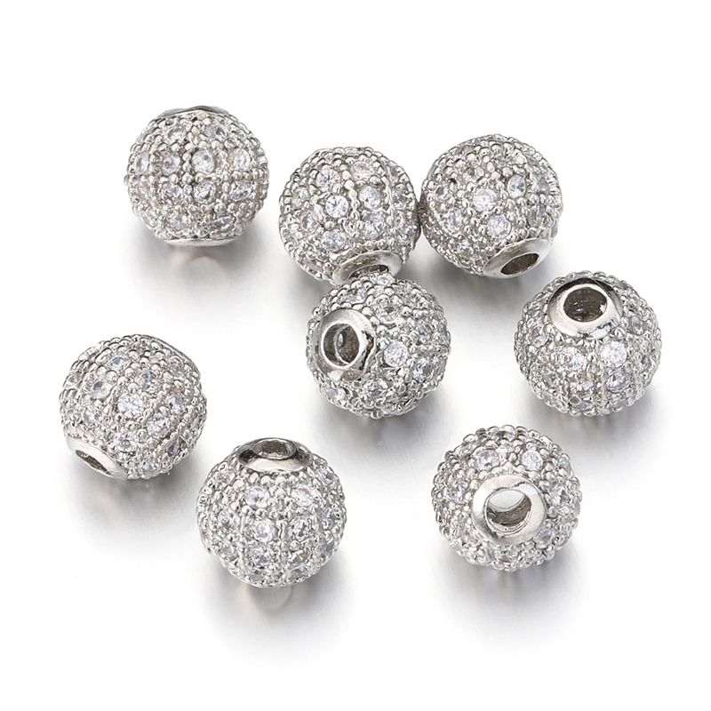 5pcs Metal Brass Micro Pave Cubic Zirconia Round Spacer Loose Beads for DIY Charms Necklace Bracelet Jewelry Making Accessories
