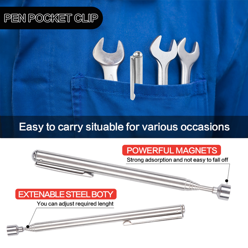 Easy to Use and Carry: The magnetic pick-up tool reduces the need to bend and reach, minimising safety risks during use. Each tool comes with a clip that makes it easy to carry in a pocket or kit