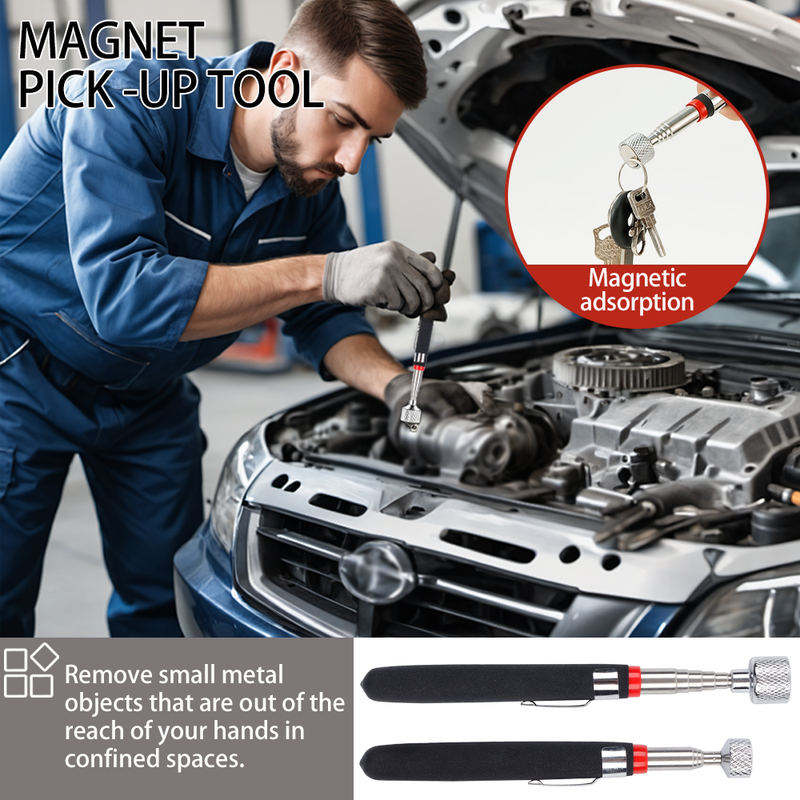 Multi-purpose: The telescopic magnet pickup tool is ideal for removing small metal items out of reach in confined spaces, such as screws, nuts and nails that fall behind HVAC units; interior cabinets; car parts; workbenches and sewing machines