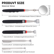 Telescopic Length: Magnetic pickup tool: 1.5 pounds telescopic from 11.4 cm to 49.1 cm, 3.5 pounds telescopic from 13.3 cm to 64 cm, 8 pounds telescopic from 16.6 cm to 66cm, 63.5 pounds telescopic from 18 cm to 76.5 cm