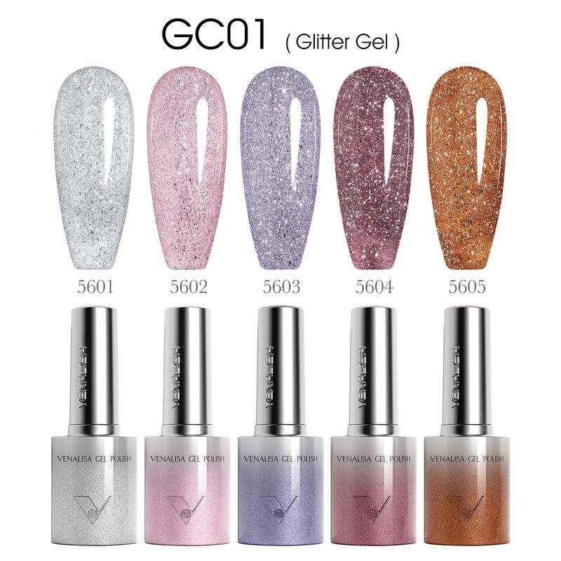 5pcs Venalisa Hema/TPO Free Cat Eye Nail Gel Polish Color Palette Kit Ultra Glitter Diamond Sparkle Soak Off UV LED Varnish Set