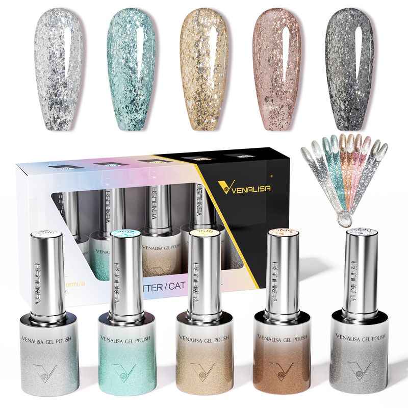 VENALISA 10ml NAIL GEL POLISH CAT EYE AND GLITTER GEL KIT