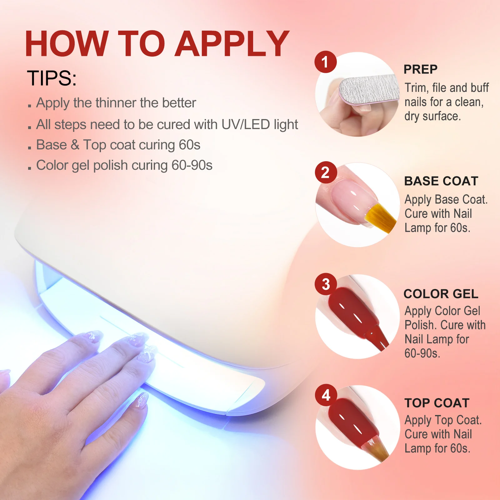 1. Made from healthy, eco-friendly, non-toxic materials. Free of HEMA, TPO , the base and top coats are gentle on nails, reducing irritation.
