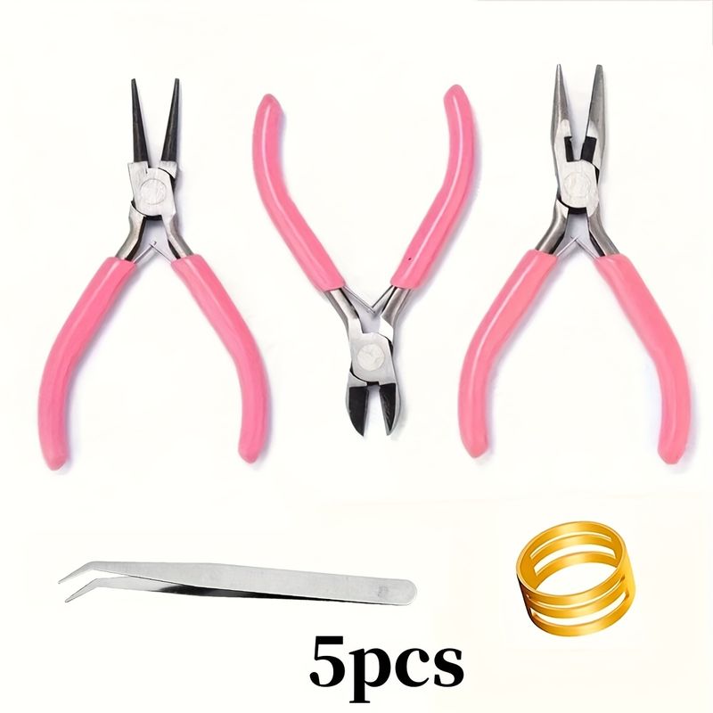 5pcs/3pcs/2pcs Pink Jewelry Pliers Tool Kit Includes Needle Round Wire Cutter And Curved Nose Pliers For Jewelry Beading Repair