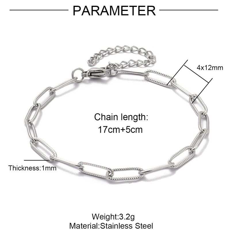 5pcs/Lot 17-22cm 18k Gold Plated Stainless Steel Paperclip Cross Link Chain Bracelet Women Handmade DIY Charm Jewelry Making