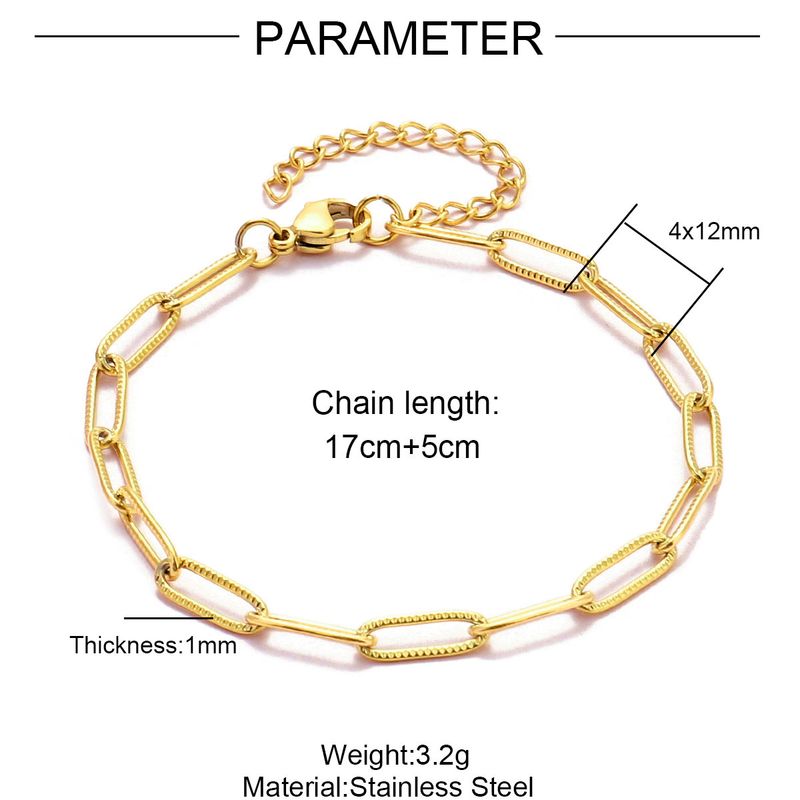 5pcs/Lot 17-22cm 18k Gold Plated Stainless Steel Paperclip Cross Link Chain Bracelet Women Handmade DIY Charm Jewelry Making