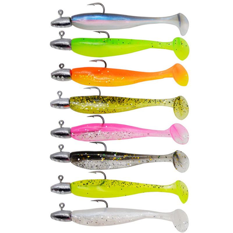 5Pcs/Lot T-tail Soft Fishing Bait Matched With Jig Head Hooks Artificial Wobblers Swimbait Fishing Tackles For Bass Pike Pesca