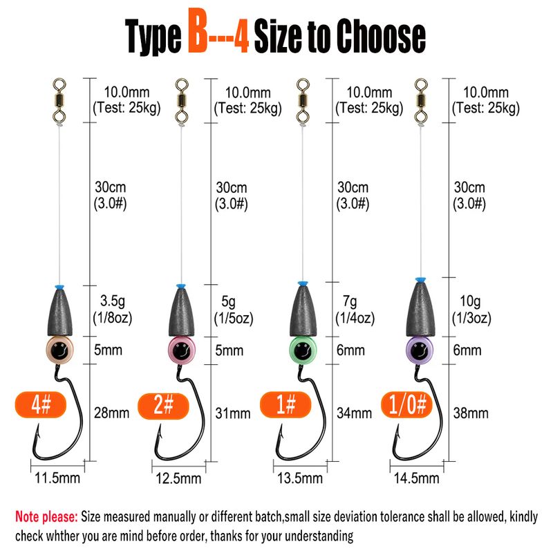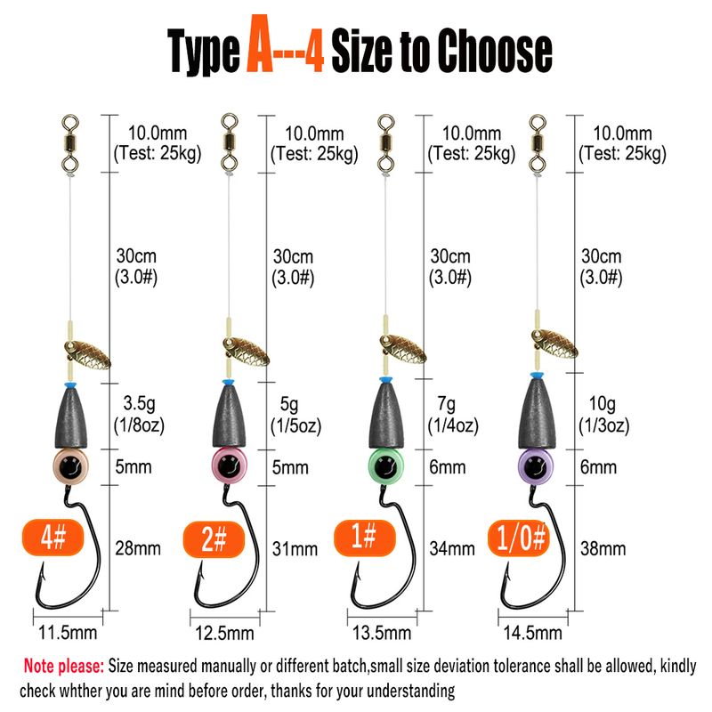 Weighter Size: 3.5g(1/8oz); 5g(1/5oz), 7g(1/4oz); 10g(1/3oz) (Distinguish as Lead Weight)