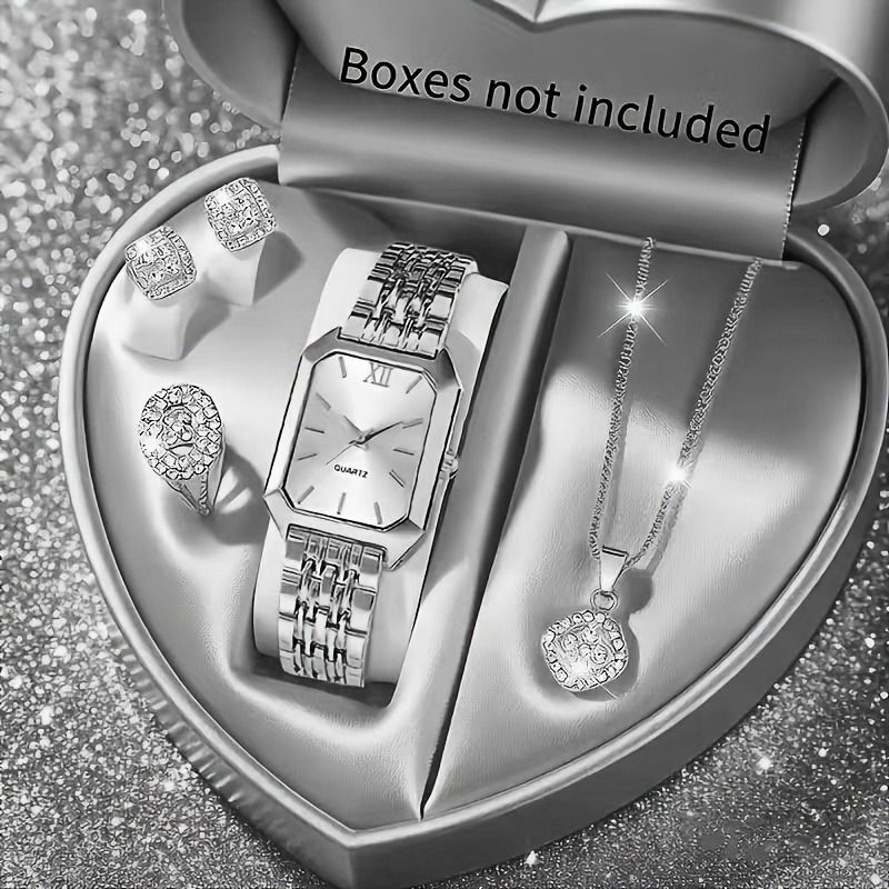 5PCS/Set Elegant Rectangle Women Watches Fashion Roma Dial Ladies Quartz Wristwatch Rhinestone Jewelry Set(Without Box)