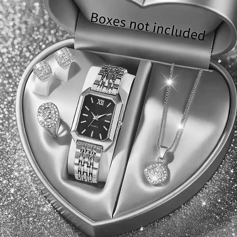 5PCS/Set Elegant Rectangle Women Watches Fashion Roma Dial Ladies Quartz Wristwatch Rhinestone Jewelry Set(Without Box)