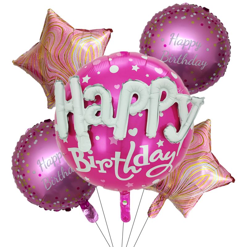 5Pcs/set Happy Birthday Party Balloon Round Heart Foil Helium Balloons Wedding Valentines Day Love You Decoration Supplies