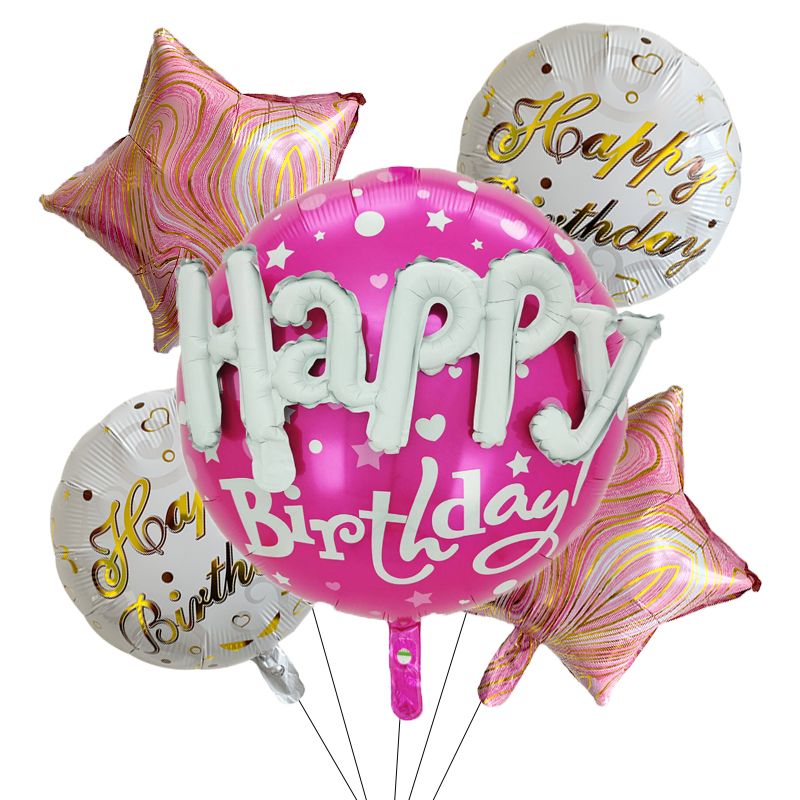 5Pcs/set Happy Birthday Party Balloon Round Heart Foil Helium Balloons Wedding Valentines Day Love You Decoration Supplies