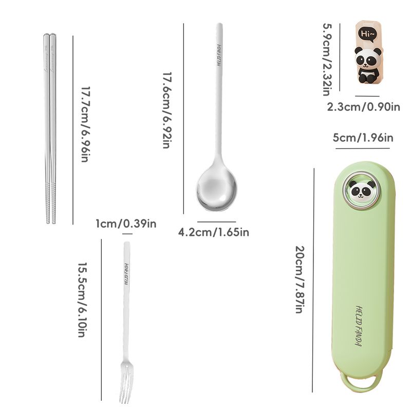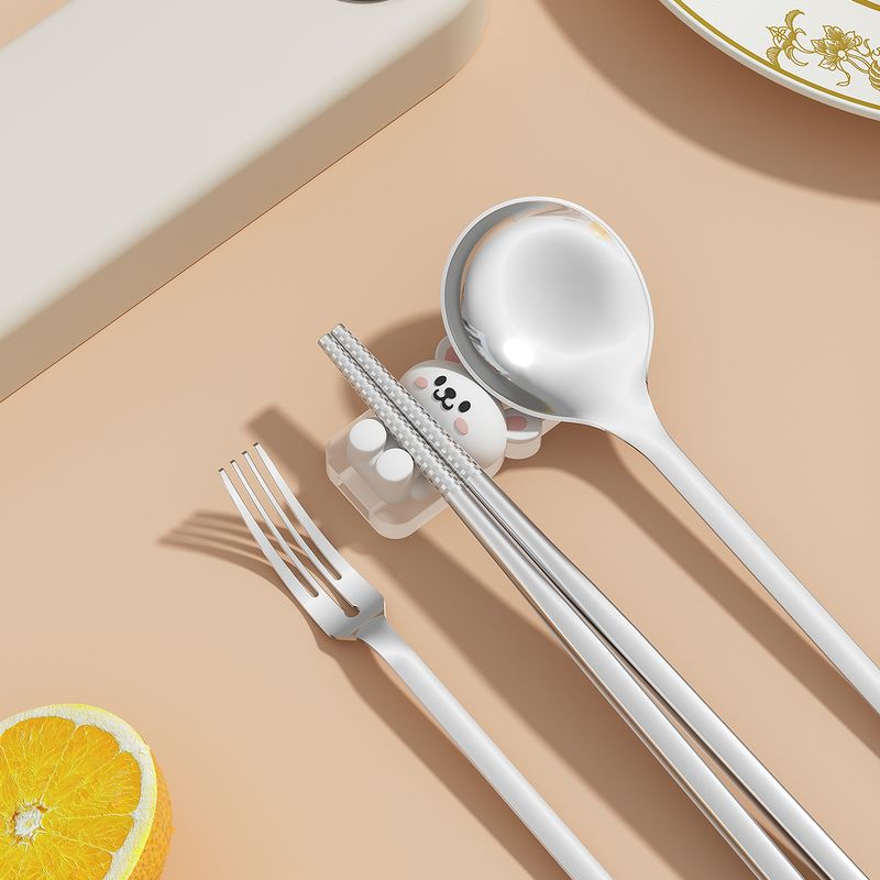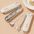 5pcs/set Portable Cartoon Dinnerware Set Reusable 316 Stainless Steel Cutlery Set With Chopsticks Holder & Box For Student Adult
