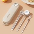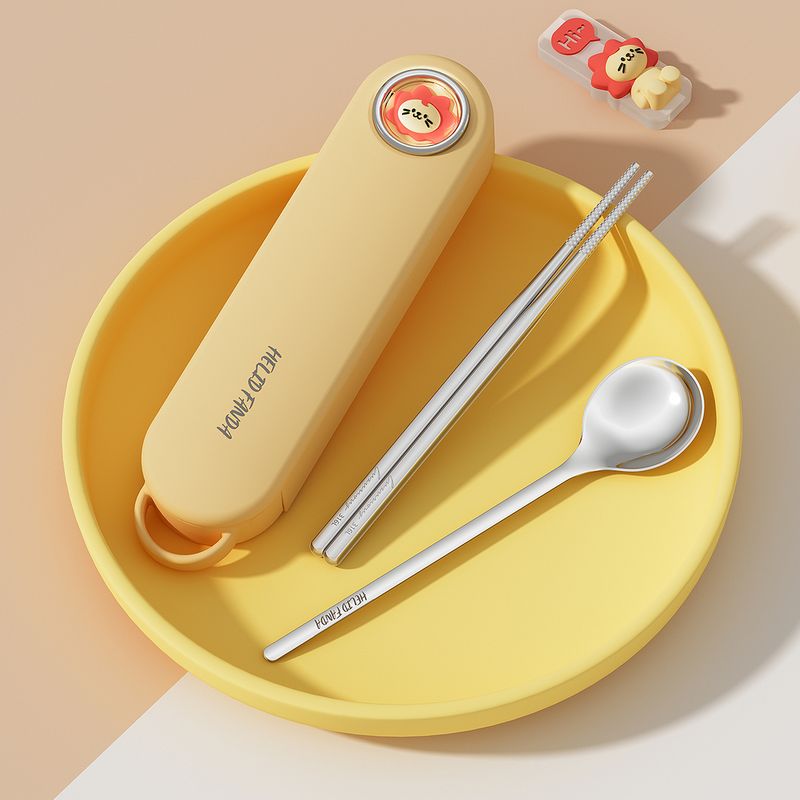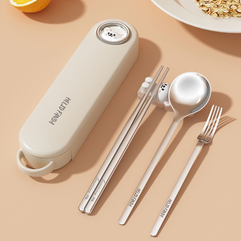 5pcs/set Portable Cartoon Dinnerware Set Reusable 316 Stainless Steel Cutlery Set With Chopsticks Holder & Box For Student Adult