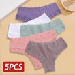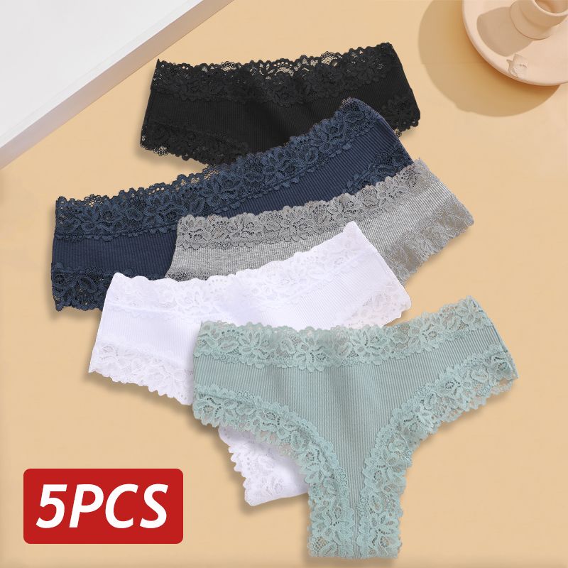 5PCS/Set Women Lace Seamless Cotton Panties Sexy Brazilian Pants Ribbed Breathable Girls Underwear Soft Plus Size Lingerie S-XL