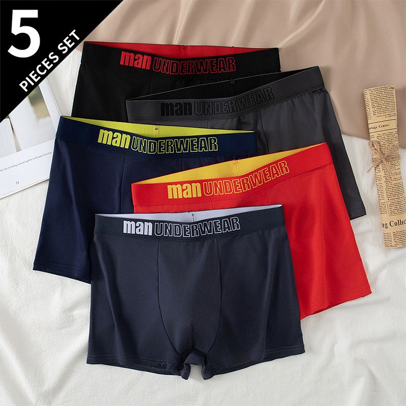 5piece Set Of Men's Classic Black And White Elastic Long Underwear Quick Drying Comfortable Sporty Youth Trend Flat Corner Pants