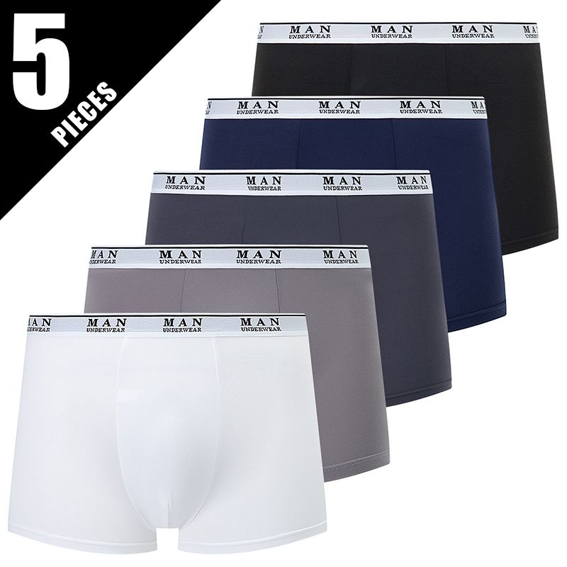 5piece Set Of Men's Classic Black And White Elastic Long Underwear Quick Drying Comfortable Sporty Youth Trend Flat Corner Pants