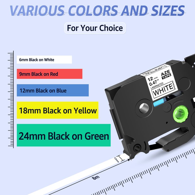 Length 8m Label Tape:Black on Clear / Black on White / Black on Red / Black on Blue / Black on Yellow / Black on Green / White on Black
