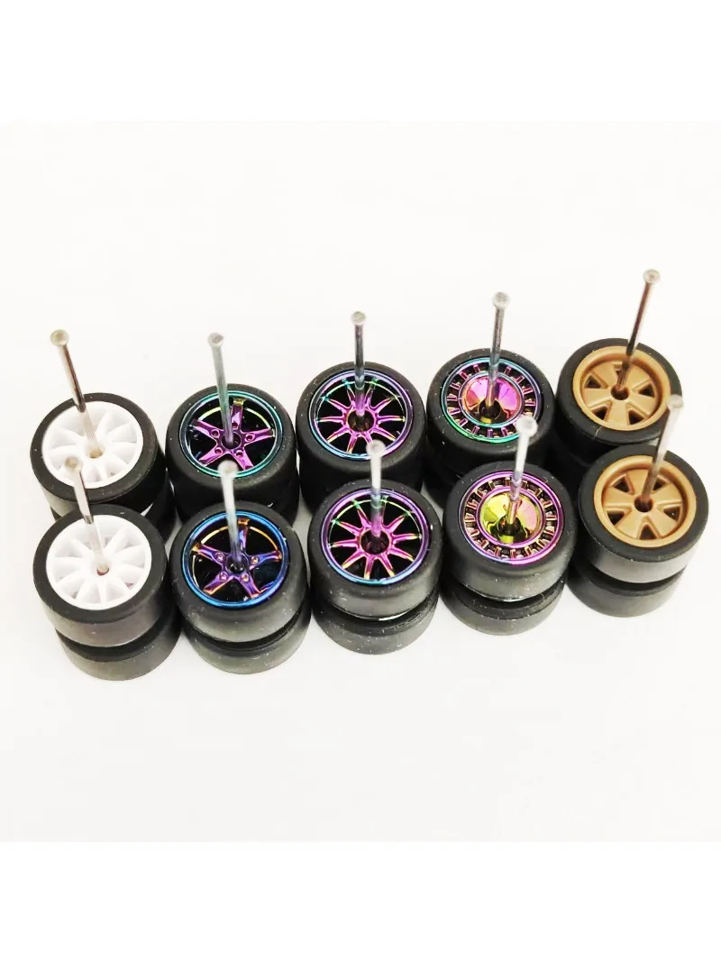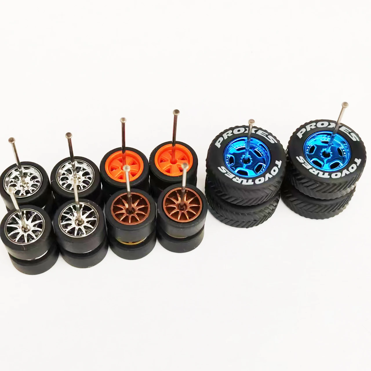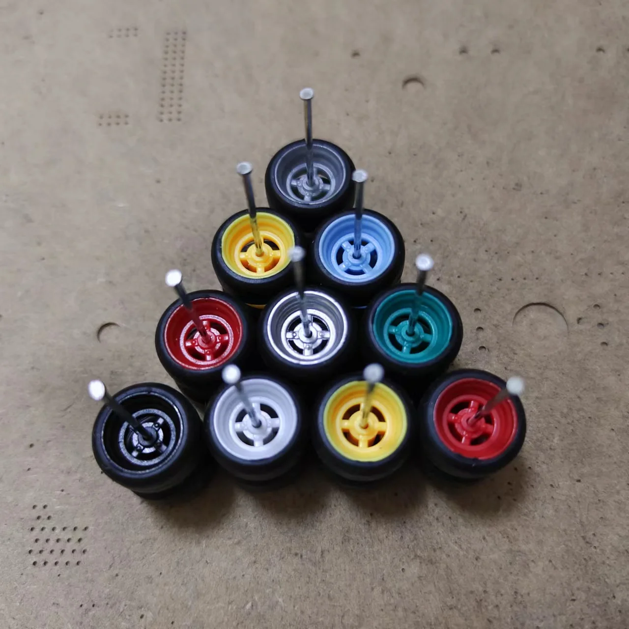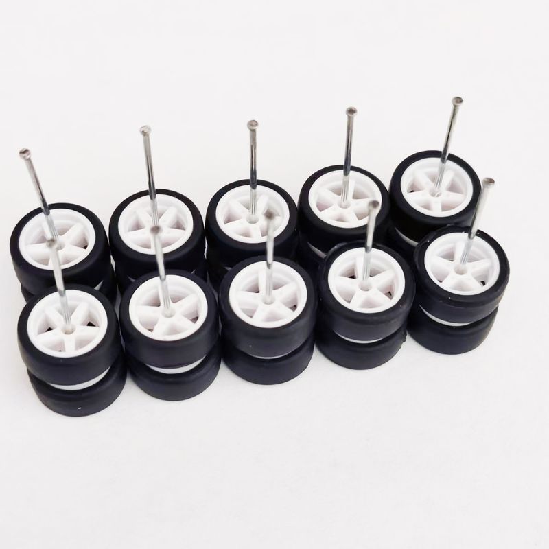 5Sets(for 5 Cars) 1/64 Alloy Car Wheels Rubber Tires for 1:64 Mini Model Car Matchbox