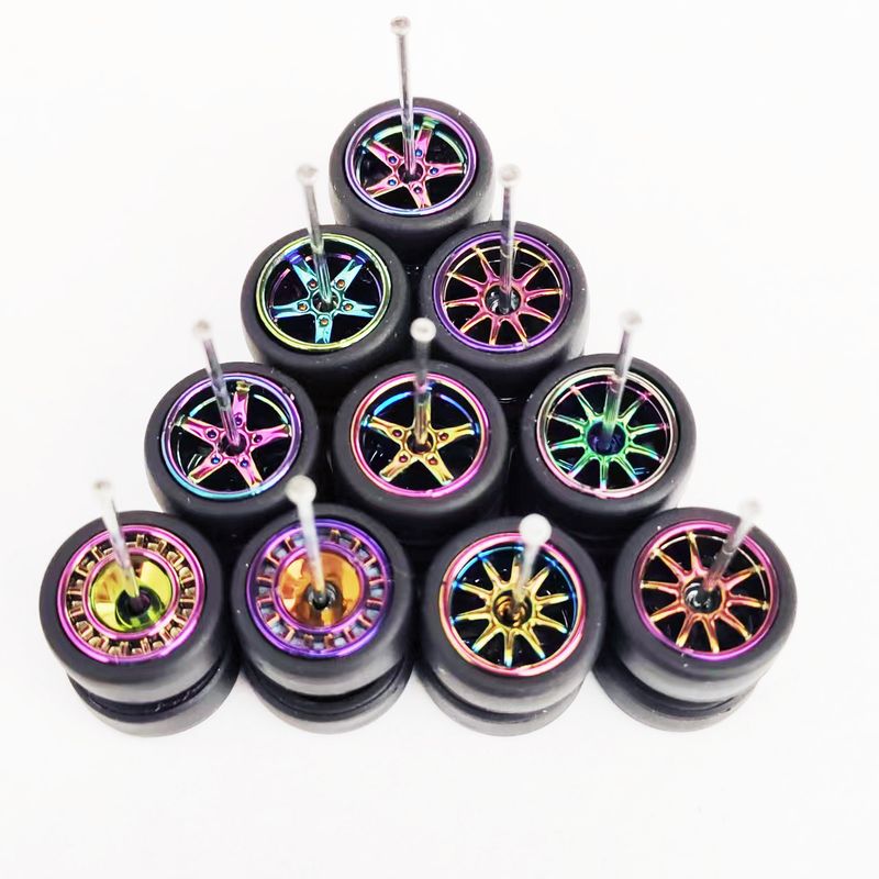 5Sets(for 5 Cars) 1/64 Alloy Car Wheels Rubber Tires for 1:64 Mini Model Car Matchbox