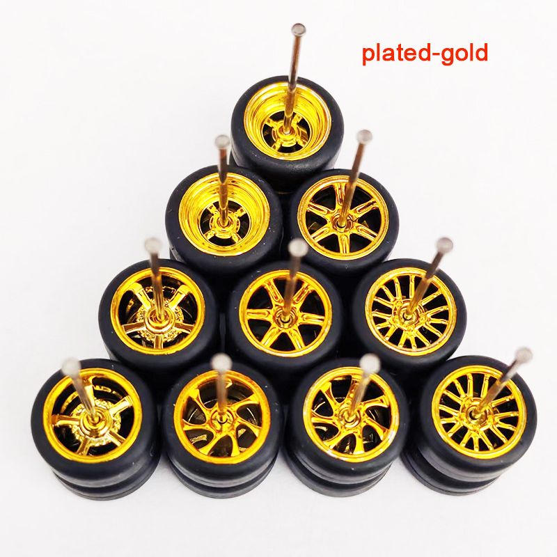 5Sets(for 5 Cars) 1/64 Alloy Car Wheels Rubber Tires for 1:64 Mini Model Car Matchbox