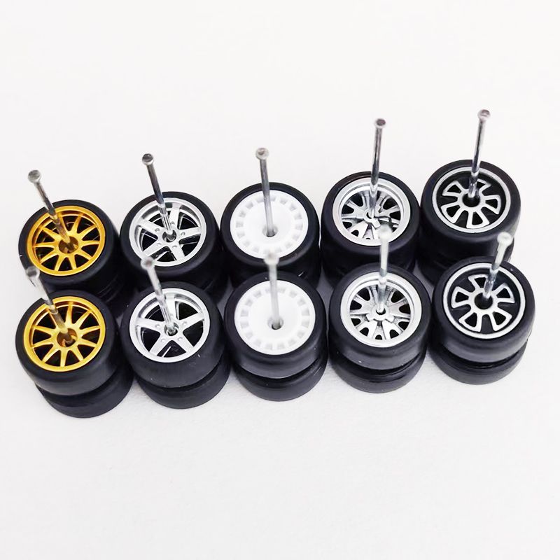 5Sets(for 5 Cars) 1/64 Alloy Car Wheels Rubber Tires for 1:64 Mini Model Car Matchbox