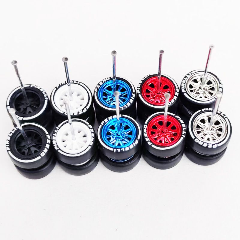 5Sets(for 5 Cars) 1/64 Alloy Car Wheels Rubber Tires for 1:64 Mini Model Car Matchbox
