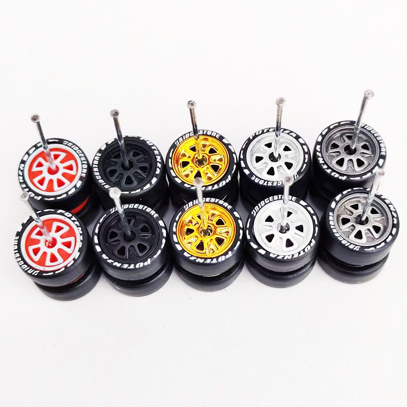 5Sets(for 5 Cars) 1/64 Alloy Car Wheels Rubber Tires for 1:64 Mini Model Car Matchbox