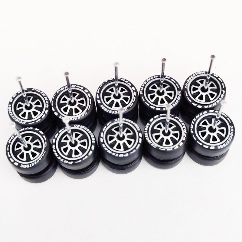 5Sets(for 5 Cars) 1/64 Alloy Car Wheels Rubber Tires for 1:64 Mini Model Car Matchbox