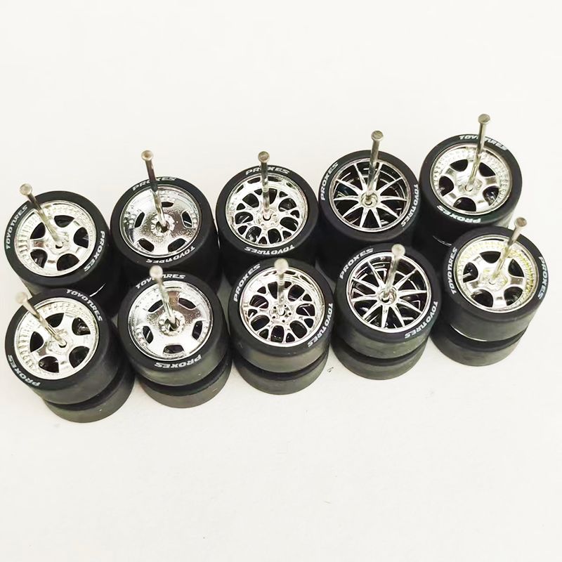 5Sets(for 5 Cars) 1/64 Alloy Car Wheels Rubber Tires for 1:64 Mini Model Car Matchbox