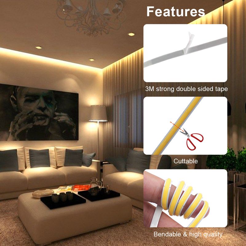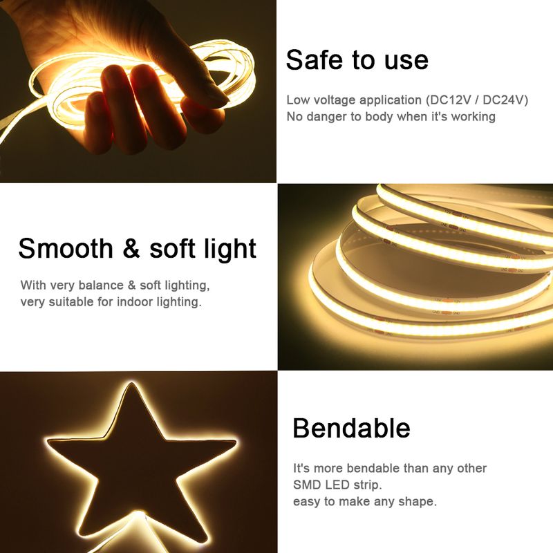 1. This low voltage COB strip light cannot connect to 220V or 110V directly! A 5V/12V/24V transformer is required , not included.