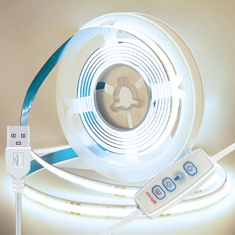 5V USB COB Led Strip Lights with 3key Dimmer Flexible Diode Tape White Warm White for Room TV Mirror Backlight Cabinet Light