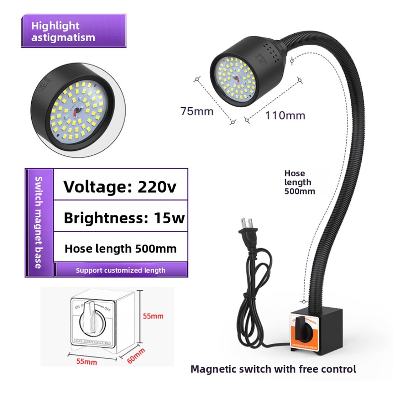 5W/10W/15W Led Machine Tool Work Light 24V/220V Switch Magnetic Flexiable ExtendGooseneck Punching/Lathe Machine Industrial Lamp