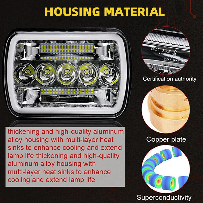 5x7Inch Square Headlight 45W Angel Eyes Dual-Colors DRL with High and Low Beam Headlights For Jeep Wrangler Off-road Trucks