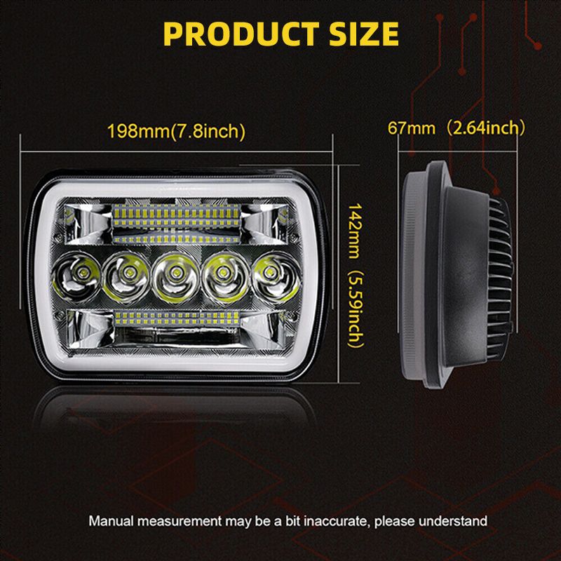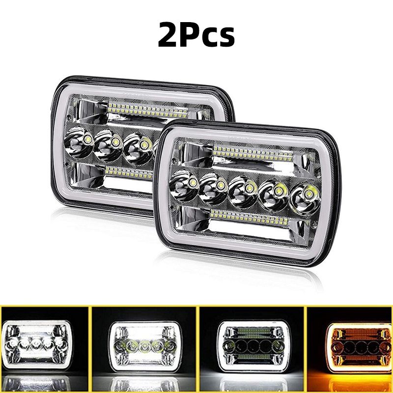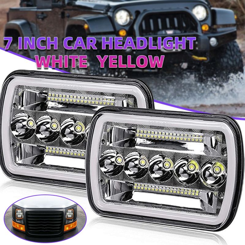 5x7Inch Square Headlight 45W Angel Eyes Dual-Colors DRL with High and Low Beam Headlights For Jeep Wrangler Off-road Trucks