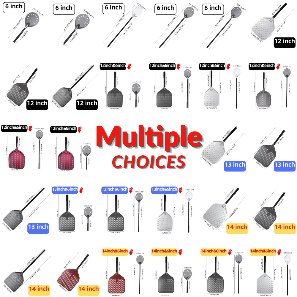6&12 13 14 Inch Aluminum Pizza Peel Bread Paddle Pizza Oven Turning Peel Hard Anodized Pizza Baking Kitchen Tool Spatula