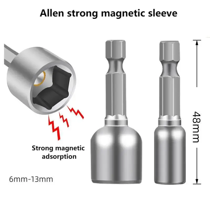 6-13mm Impact Socket Set Magnetic Nut Screwdriver,48mm Drill Bit Set 1/4" Hex Socket Adapter Bolt Drivers Socket Kit Hand Tools