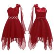 6-16Y Kids Wedding Girls Dress Sleeveless Elegant Ruched Applique Asymmetrical Hem Chiffon Princess Birthday Prom Party Dresses