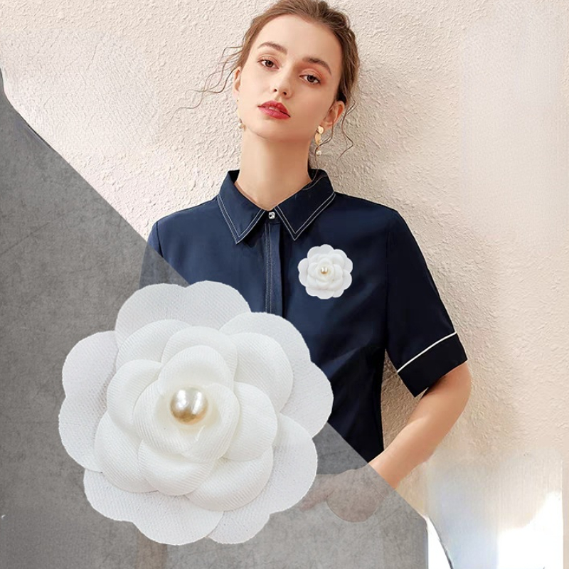 6.5CM Fabric Camellia Flower Brooch Pearl Collar Pins Wedding Party Corsage Luxulry Jewelry Brooches for Women Accessories