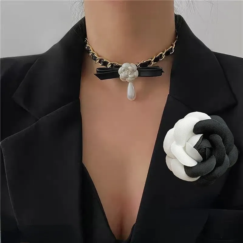 New Fashion Fabric Camellia Flower Brooch Pearl Collar Pins Wedding Party Corsage Luxulry Jewelry Brooches for Women Accessories
