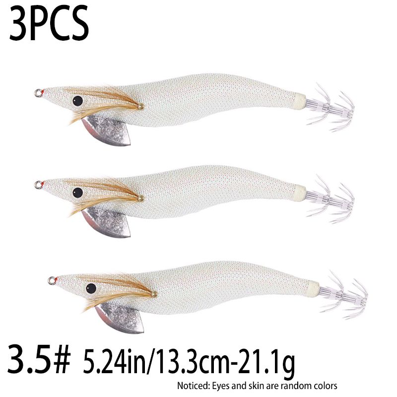 6.6g/12.5g/15.7g/21.6g Luminous Squid Jig Fishing Wood Shrimp Lure Squid Cuttlefish Jigs Lures Spinnerbait Wood Shrimp