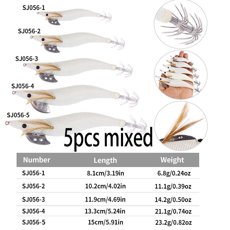 6.6g/12.5g/15.7g/21.6g Luminous Squid Jig Fishing Wood Shrimp Lure Squid Cuttlefish Jigs Lures Spinnerbait Wood Shrimp