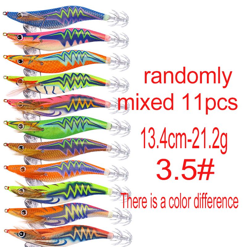 6.6g/12.5g/15.7g/21.6g Luminous Squid Jig Fishing Wood Shrimp Lure Squid Cuttlefish Jigs Lures Spinnerbait Wood Shrimp