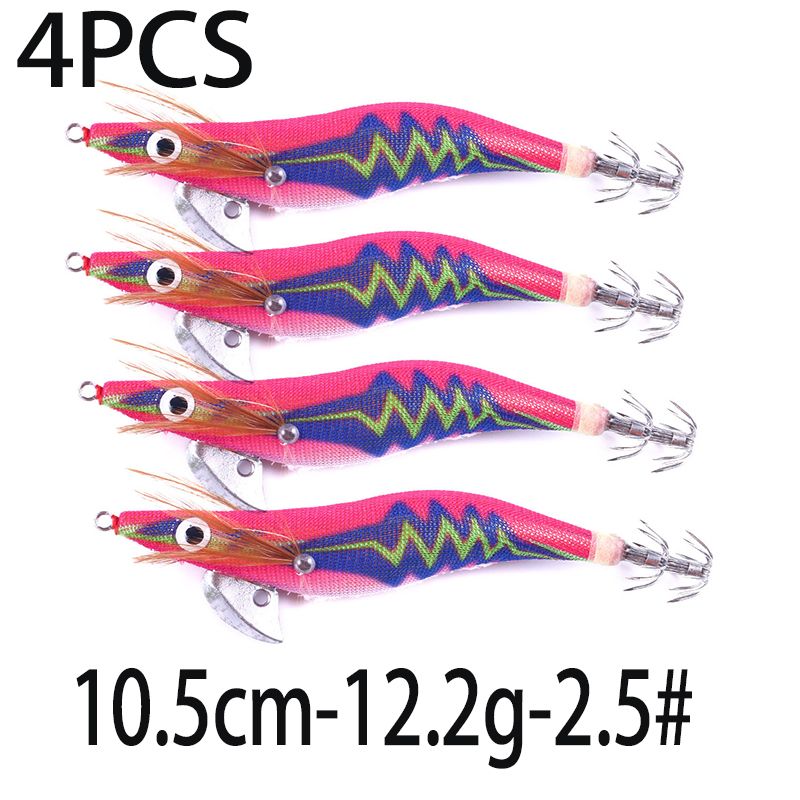 6.6g/12.5g/15.7g/21.6g Luminous Squid Jig Fishing Wood Shrimp Lure Squid Cuttlefish Jigs Lures Spinnerbait Wood Shrimp