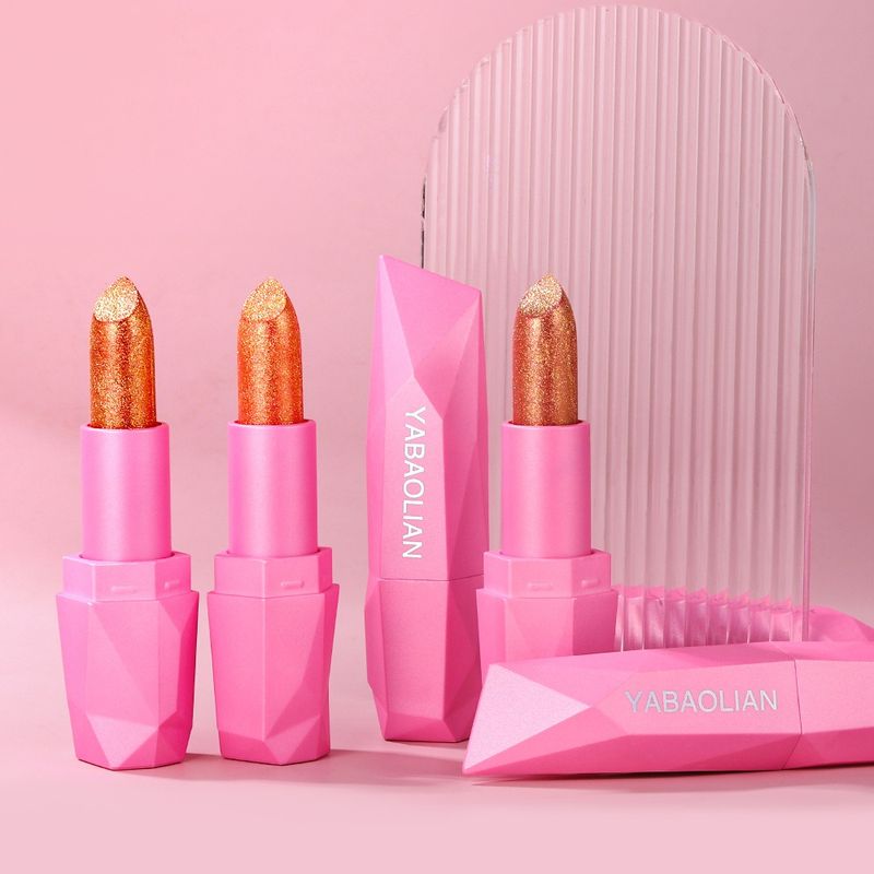 6 Colors Glitter Metallic Lipstick Waterproof Long Lasting Color-changing Diamond Non-stick Cup Sexy Red Lipstick Lips Makeup