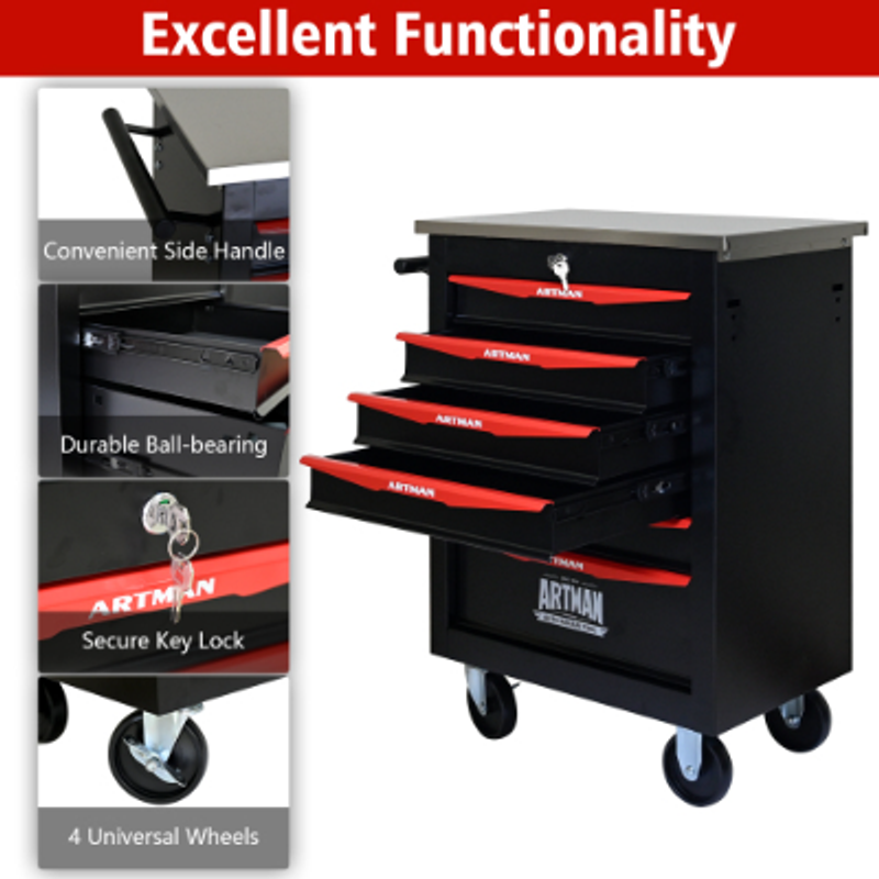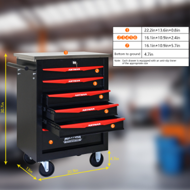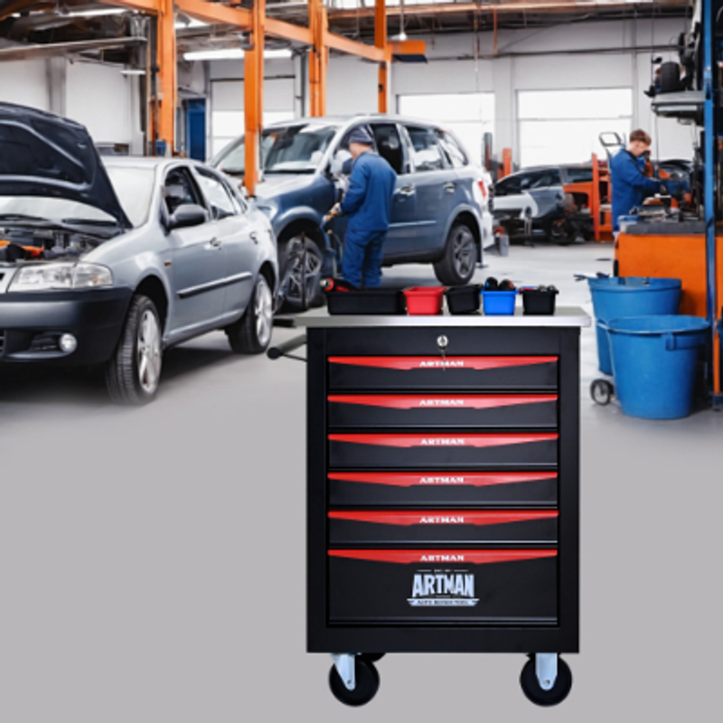 Product Name:6 Drawers Multifunctional Tool Cart with Wheels,Metal Rolling Tool Cart Storage for Garage Workshop Warehouse Repair Shop--With Stainless Steel Roof- BLACK&RED