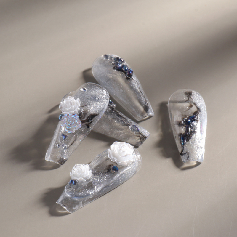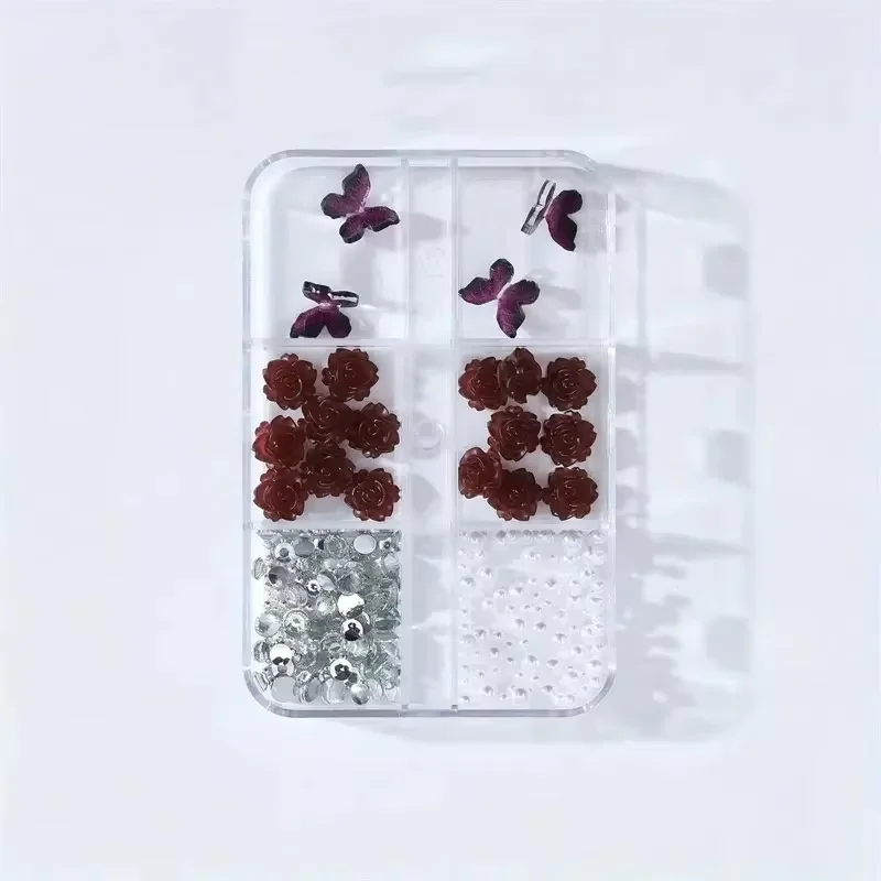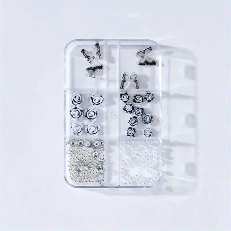 6 Grids Black Rose 3D Nail Art Nail Decoration White Rose Flower Nail Decoration nail charms Parts DIY Jewelry Accessory
