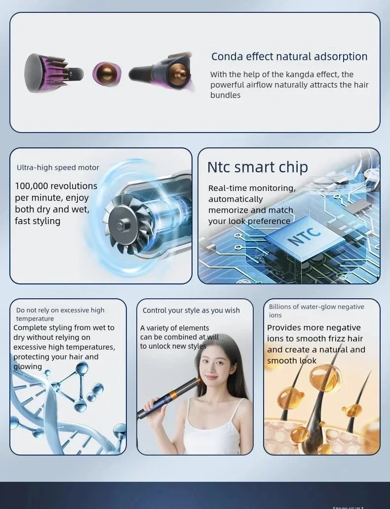 6 in 1 Hair Styler & Hair Dryer Brush 110000 RPM High-Speed Hair-care Negative Ionic Hair Dryer Fast Drying,Multi Hair Styler