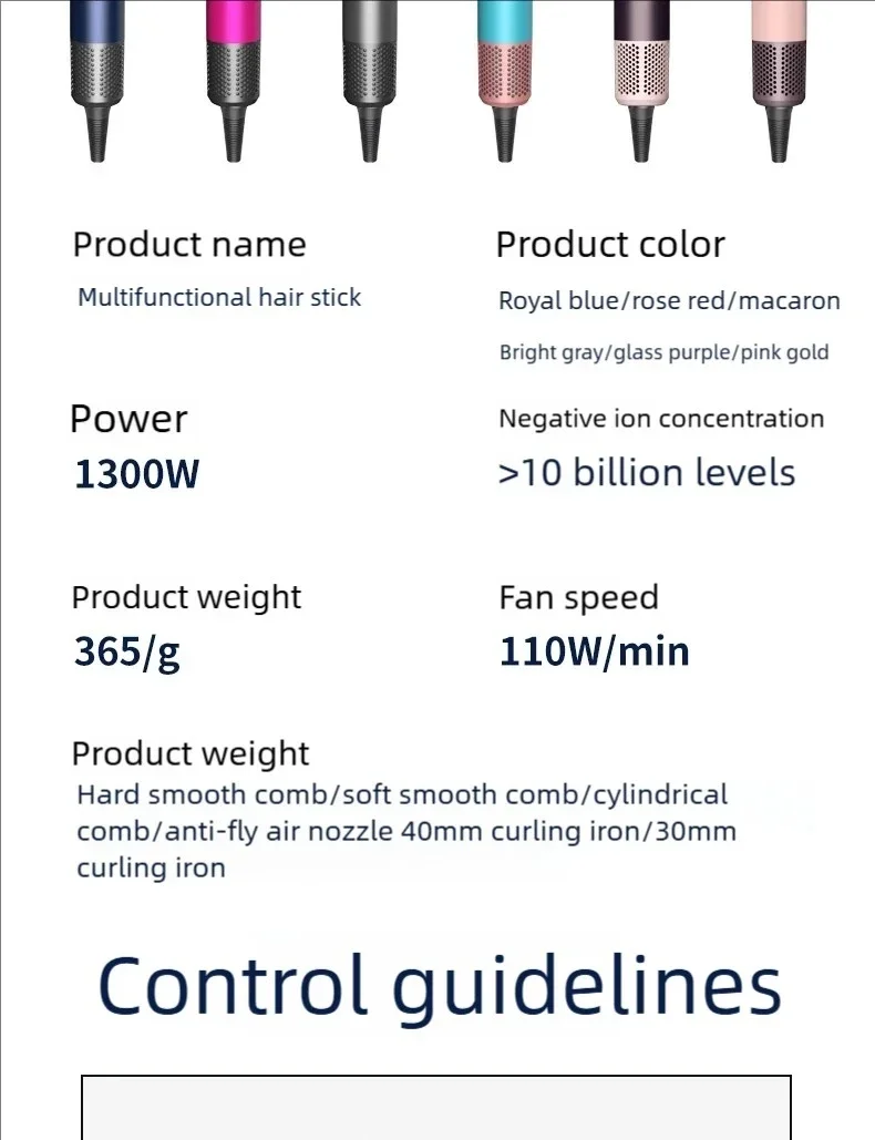 6 in 1 Hair Styler & Hair Dryer Brush 110000 RPM High Speed Negative Ionic Hair Care Blow Dryer Fast Drying Multi Function Hair