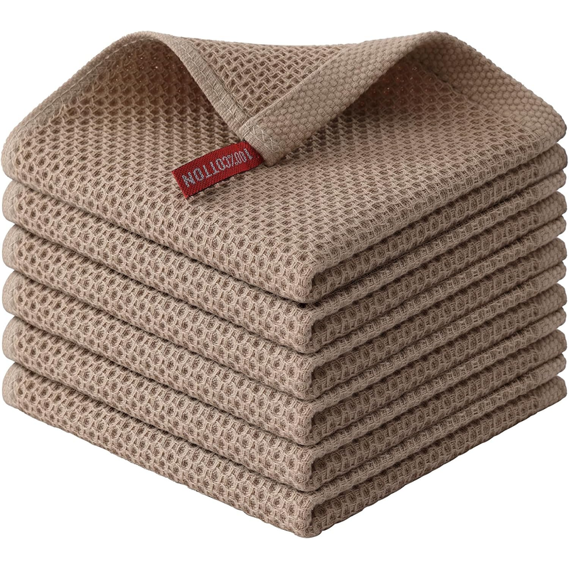 6 Pack 100% Cotton Waffle Weave Kitchen Dish Cloths, Soft Absorbent Quick Drying Dish Towels,Household Cleaning Cloth,12x12in